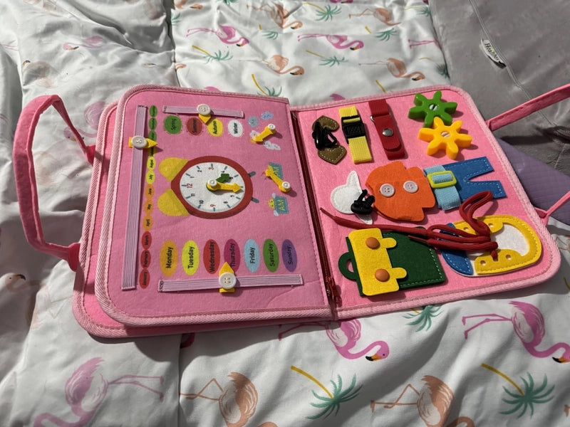 Notre Busy Board se distingue par sa portabilité exceptionnelle, la richesse et la variété de ses activités sensorielles (formes, chiffres, animaux, attaches), et sa conception robuste. Il est spécialement conçu pour favoriser l'autonomie, la motricité fine et la concentration, offrant un apprentissage ludique et durable qui captive l'attention de votre enfant.
