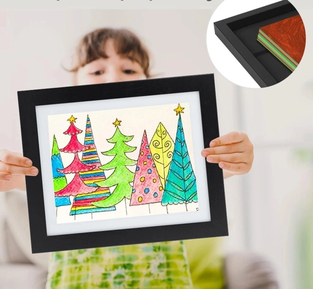 Évoque la joie de chaque coup de pinceau. Ce cadre garde précieusement l'évolution artistique de votre enfant, année après année, transformant chaque œuvre en un souvenir inestimable.