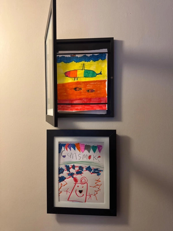 Transformez les dessins de votre enfant en véritables œuvres d'art de galerie. Nos cadres noirs épurés mettent en valeur chaque création, s'intégrant parfaitement à votre intérieur. Votre enfant sera fier de voir ses œuvres célébrées.