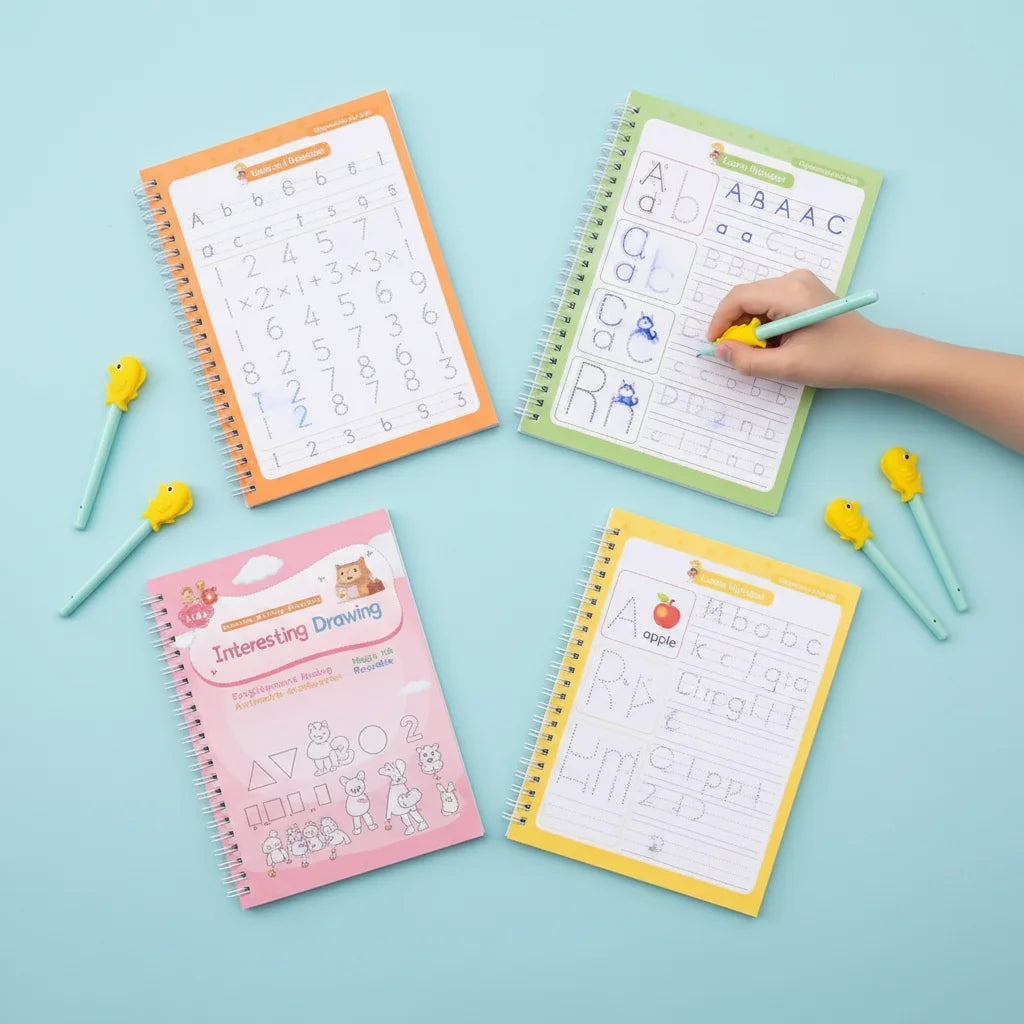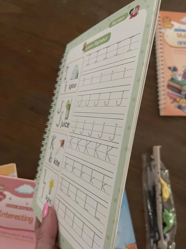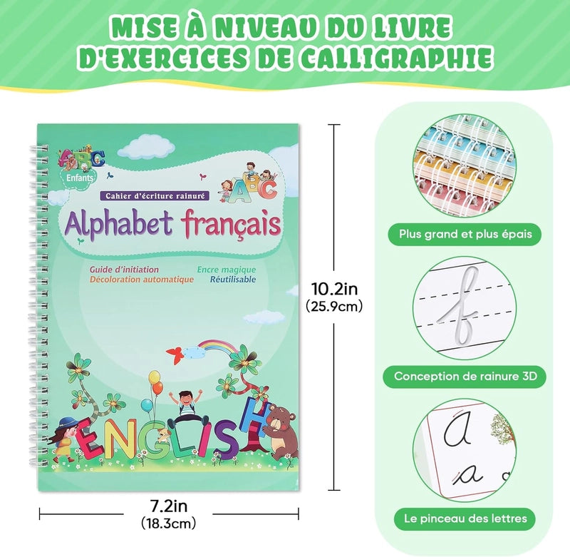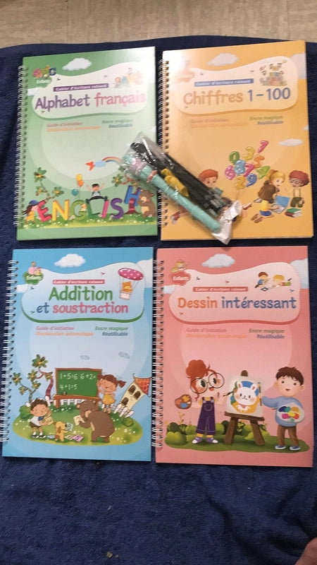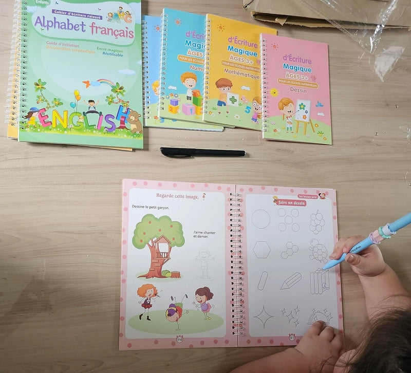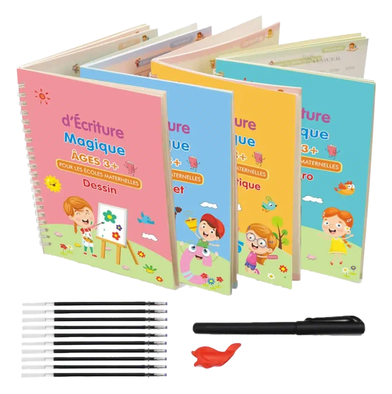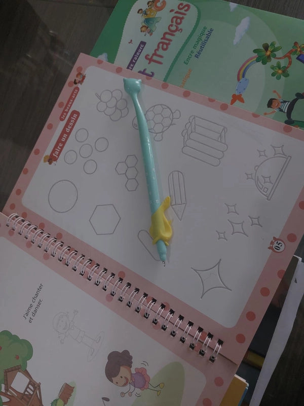 Grâce à l'encre magique qui s'efface, votre enfant peut s'entraîner à l'infini. Les guides intégrés et les stylos ergonomiques rendent l'apprentissage ludique et efficace, renforçant la confiance en soi.