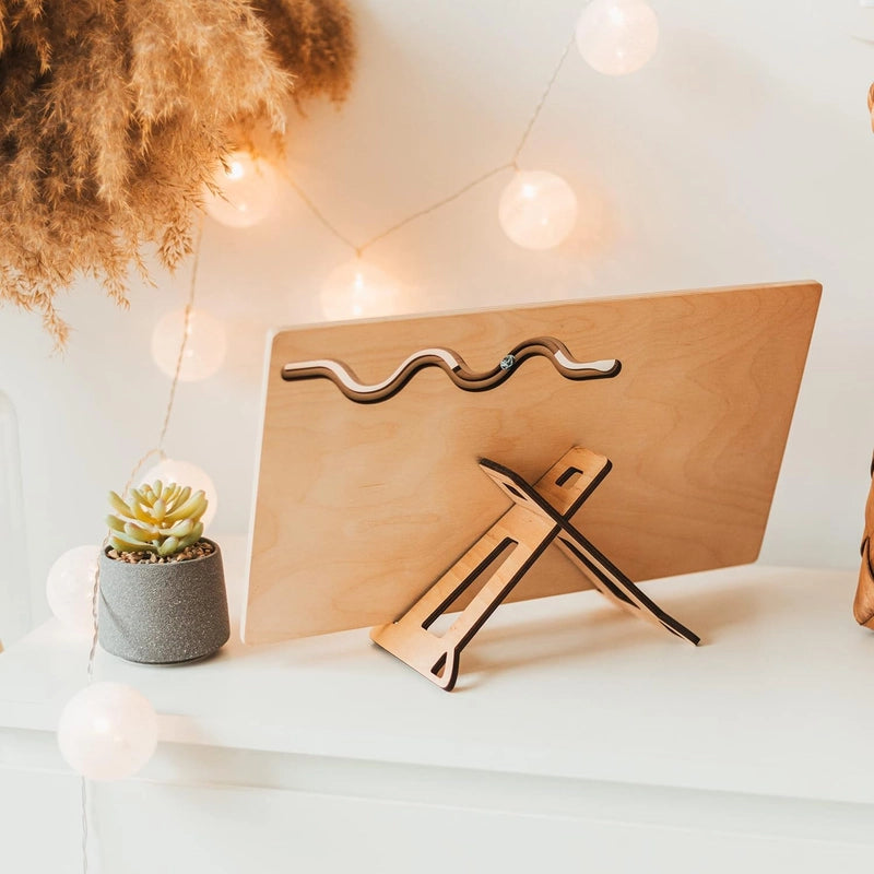 Oubliez les jouets qui encombrent. Ce busy board en bois, aux couleurs douces, est une pièce maîtresse qui embellit la chambre de l'enfant. Élégance et fonctionnalité réunies !