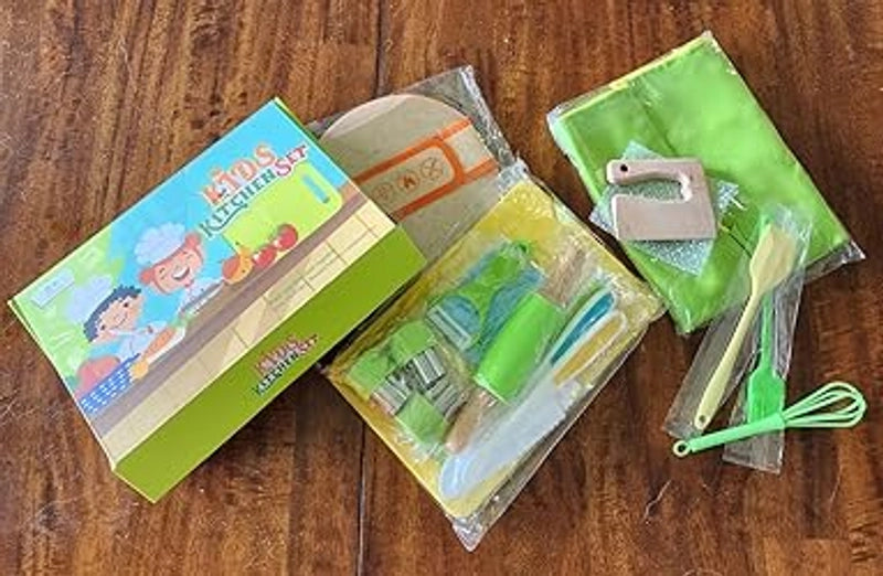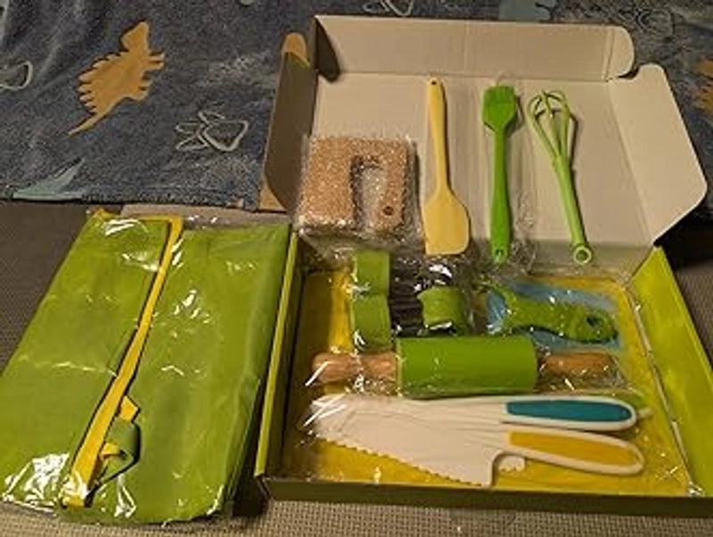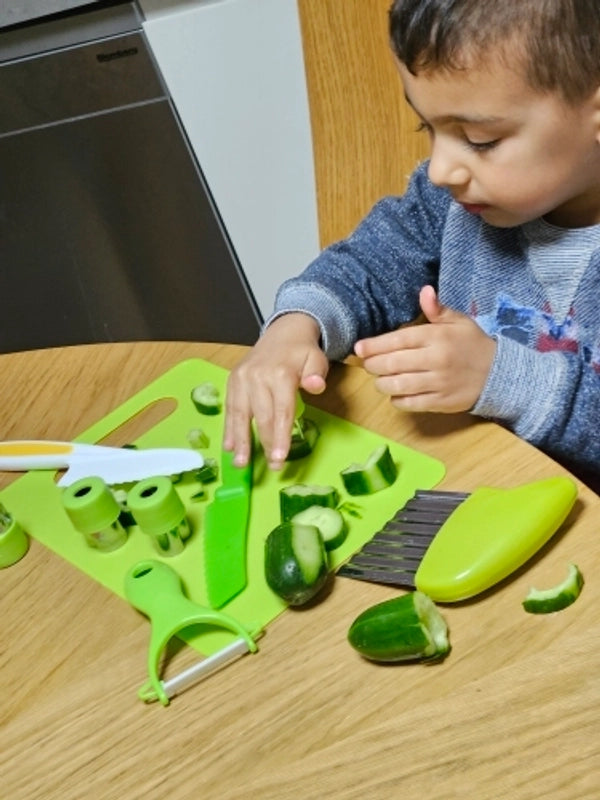 Ce set complet de 13 pièces offre une variété d'outils colorés et ergonomiques, permettant à votre enfant de couper, éplucher et créer des formes amusantes. Il est conçu pour éveiller le chef et l'apprenant en lui, tout en s'amusant.